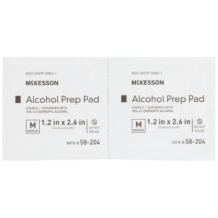 Alcohol Prep Pad McKesson 70% Strength Isopropyl Alcohol Individual Packet Medium Sterile